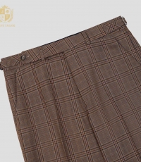 - Gam nâu cổ điển hòa cùng bố cục ô kẻ chuẩn mực, mang lại chiều sâu cho trang phục, giúp quý ông dễ dàng phối cùng blazer xanh navy, áo khoác xám hoặc một chiếc áo sơ mi trắng tinh giản.