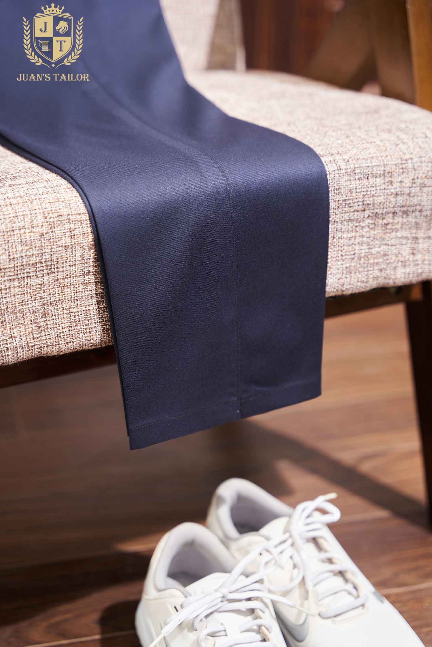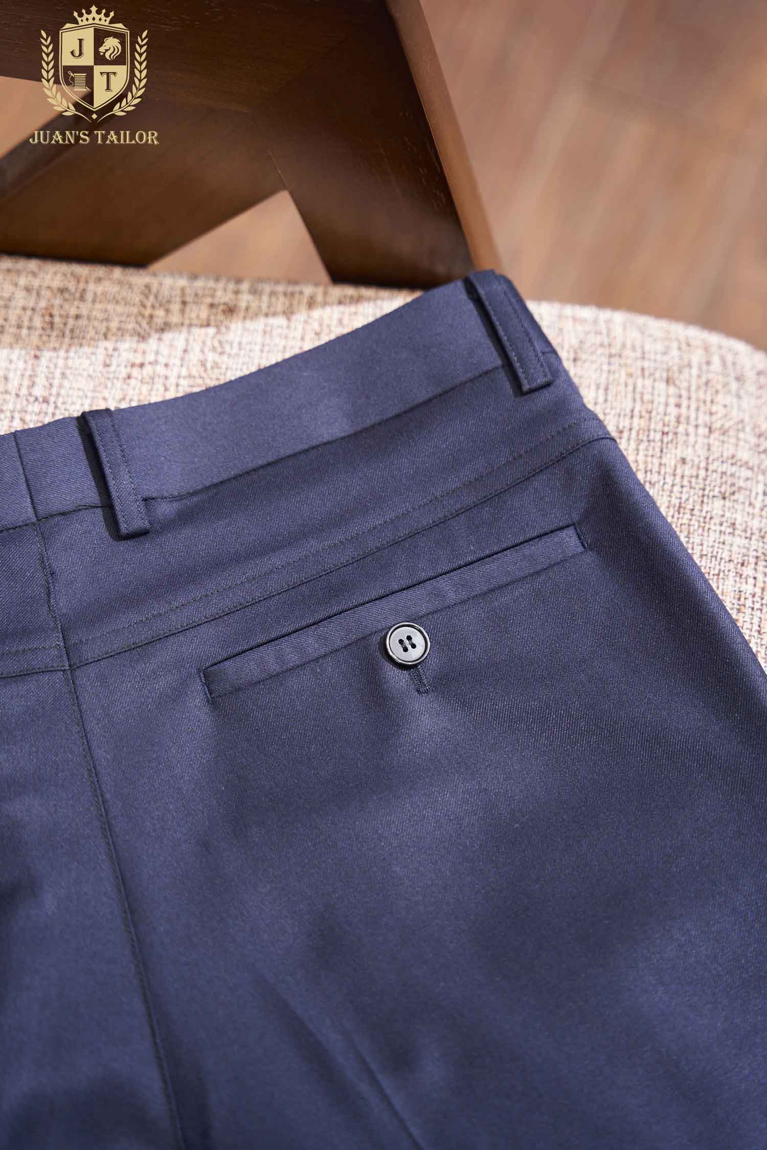 - Trong sắc xanh navy chuẩn mực, chiếc quần hiện lên với vẻ đẹp tối giản nhưng vẫn toát lên sự lịch lãm vốn có của một thiết kế may đo cao cấp. Gam màu trầm sang trọng dễ phối hợp, tạo nền cho phong cách từ công sở tới những buổi gặp gỡ trang trọng.
