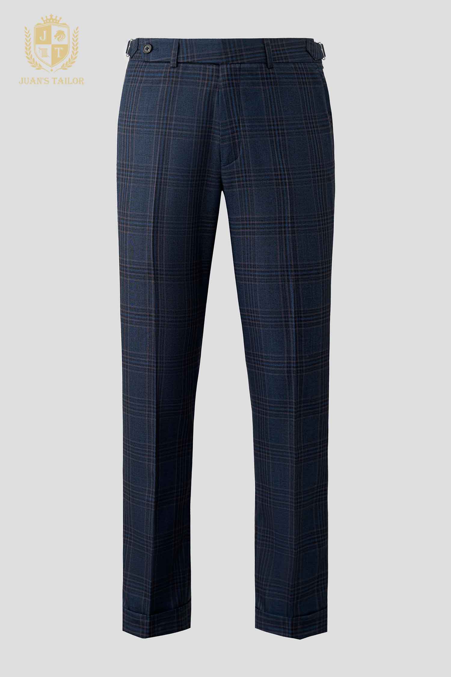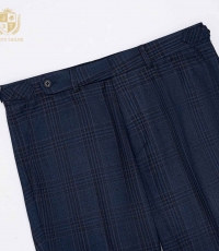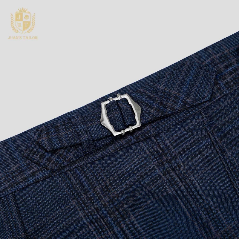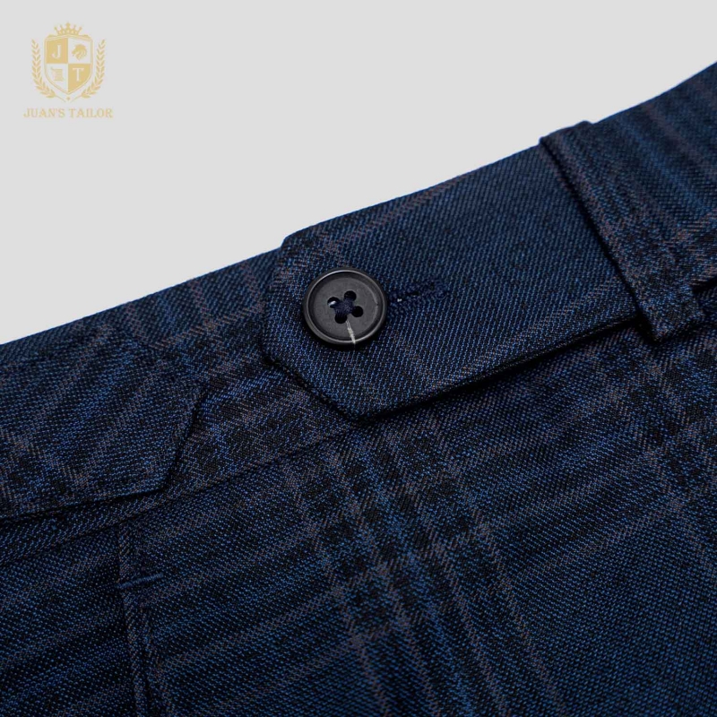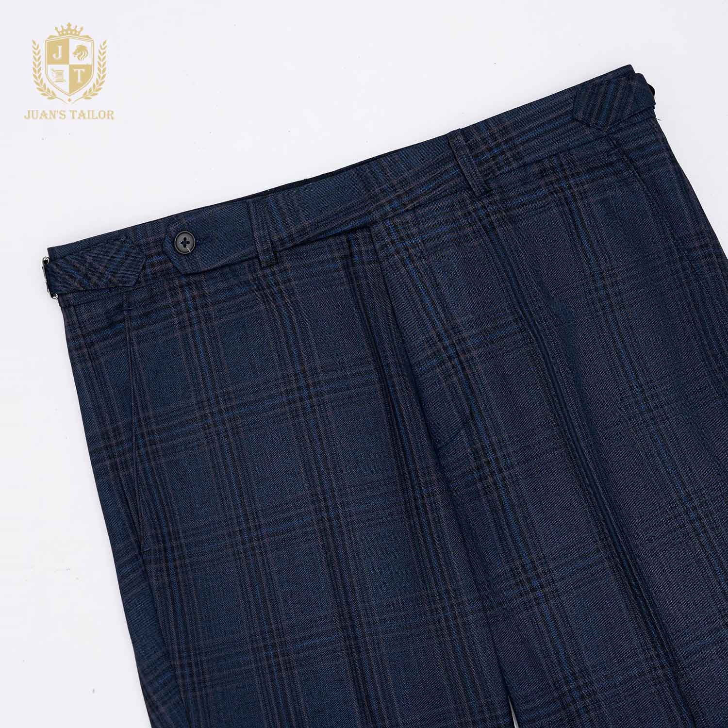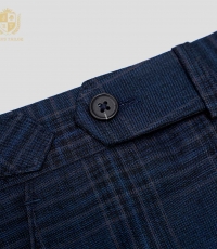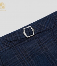 - Nền vải navy trầm tạo chiều sâu, điểm xuyết bởi những đường kẻ windowpane nâu mảnh, sắc nét nhưng không phô trương. Họa tiết caro mang tính hình khối rõ ràng, đem lại vẻ nam tính, vững chãi mà vẫn giữ sự tinh tế.