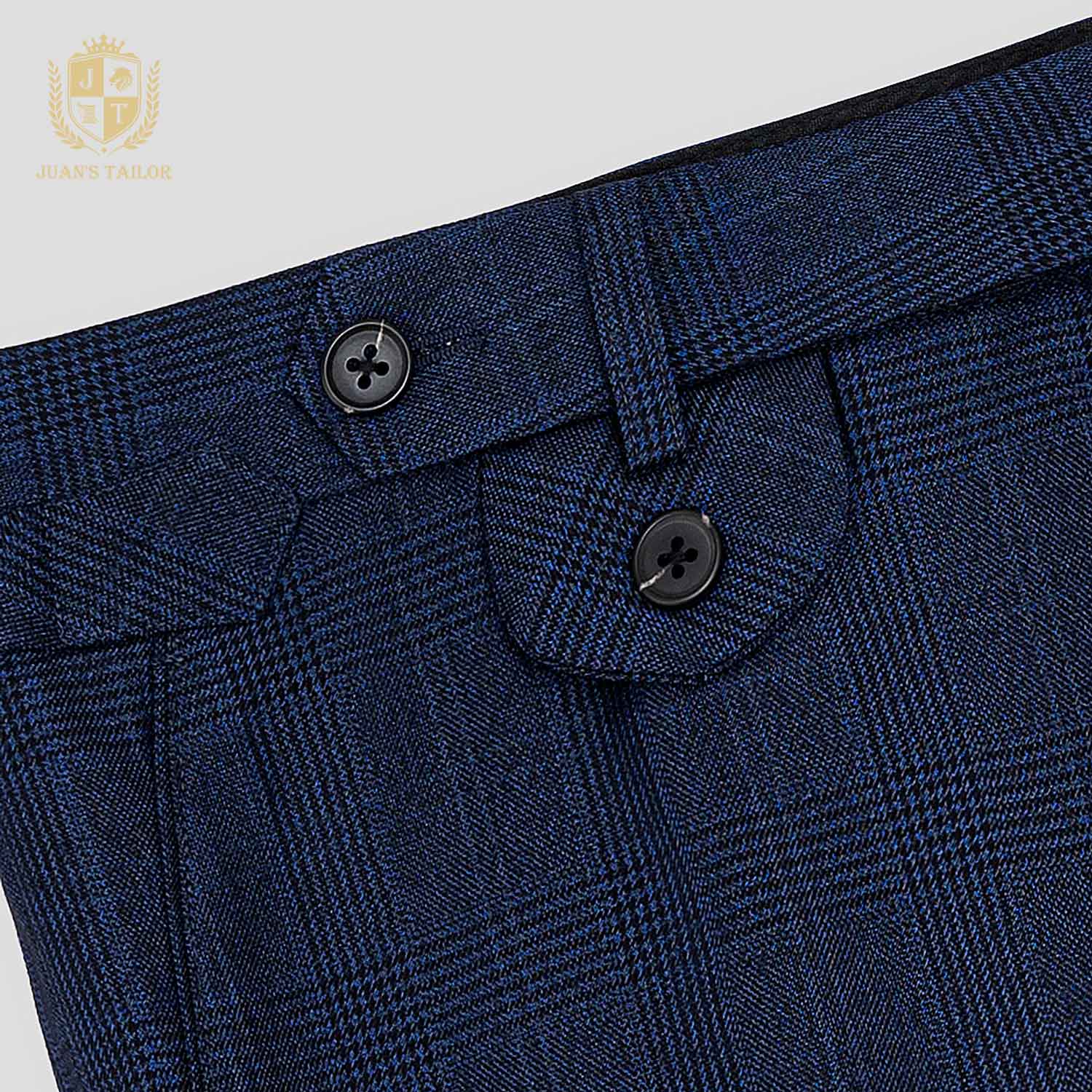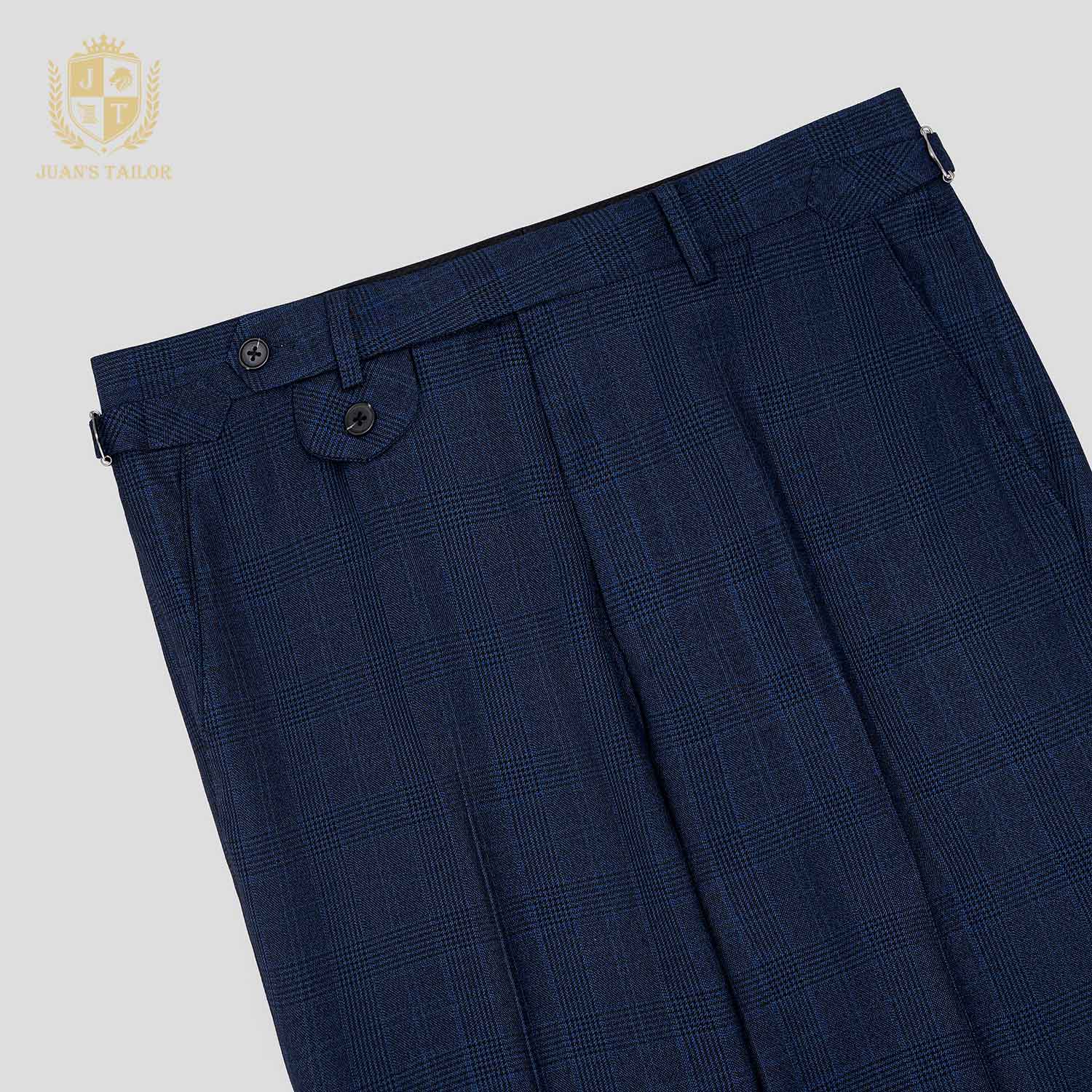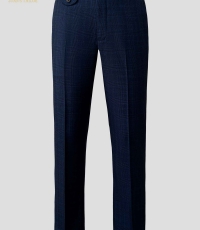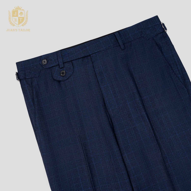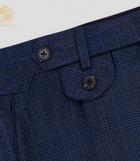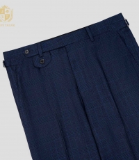 - Một thiết kế dành riêng cho quý ông yêu thích sự khác biệt nhẹ nhàng: quần âu xanh navy với đường kẻ caro tinh xảo. Không phải kiểu caro to bản dễ nhận thấy, mà là lớp họa tiết đan cài nhịp nhàng, tạo nên chiều sâu cho bề mặt vải và một cảm giác sang trọng ngầm.