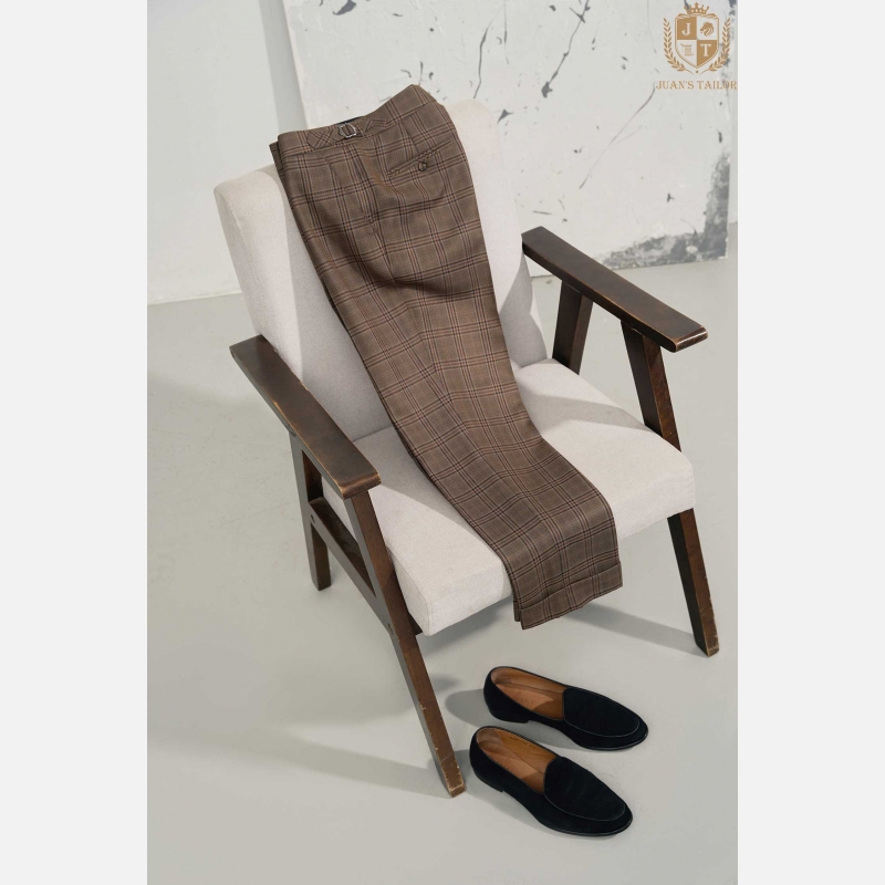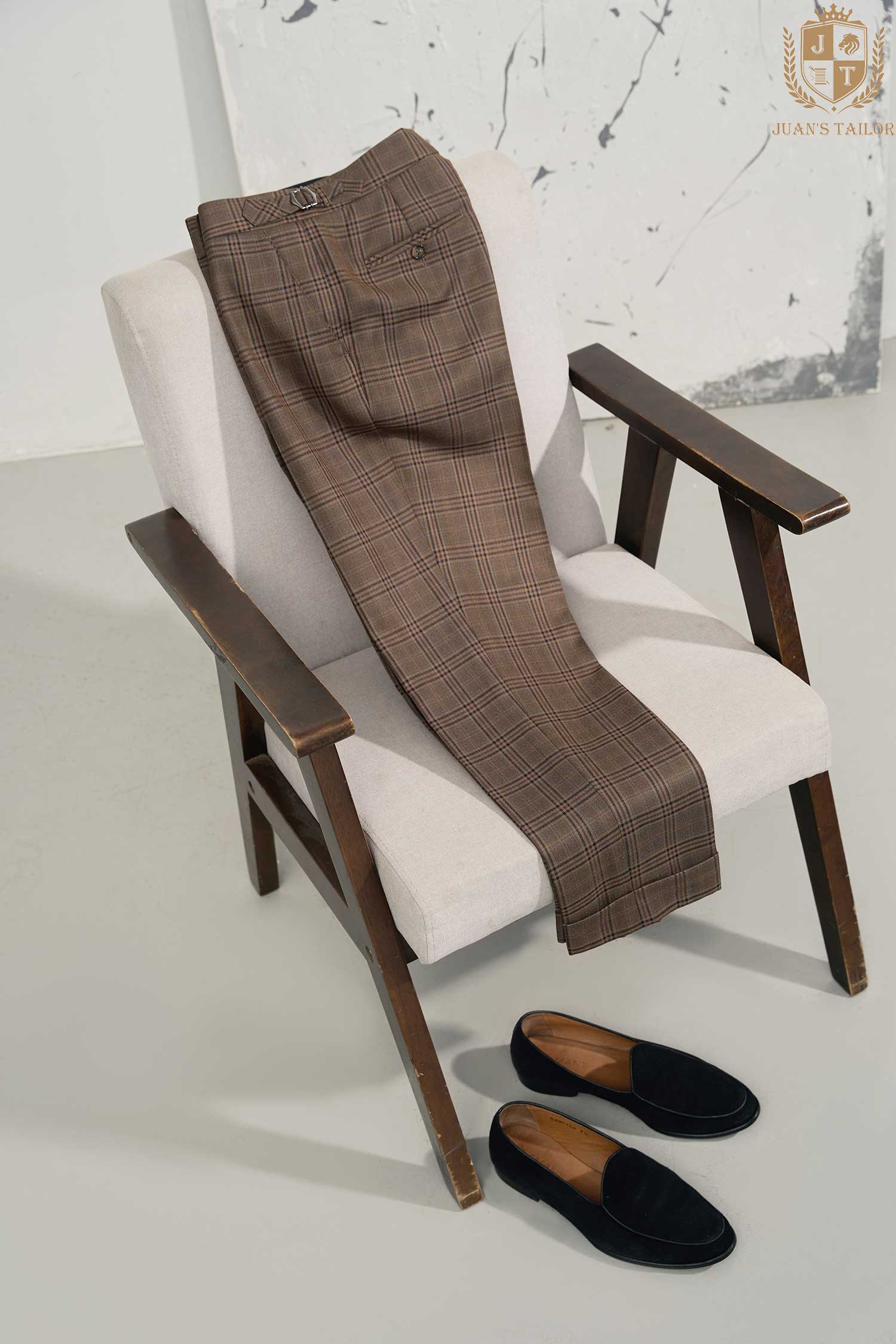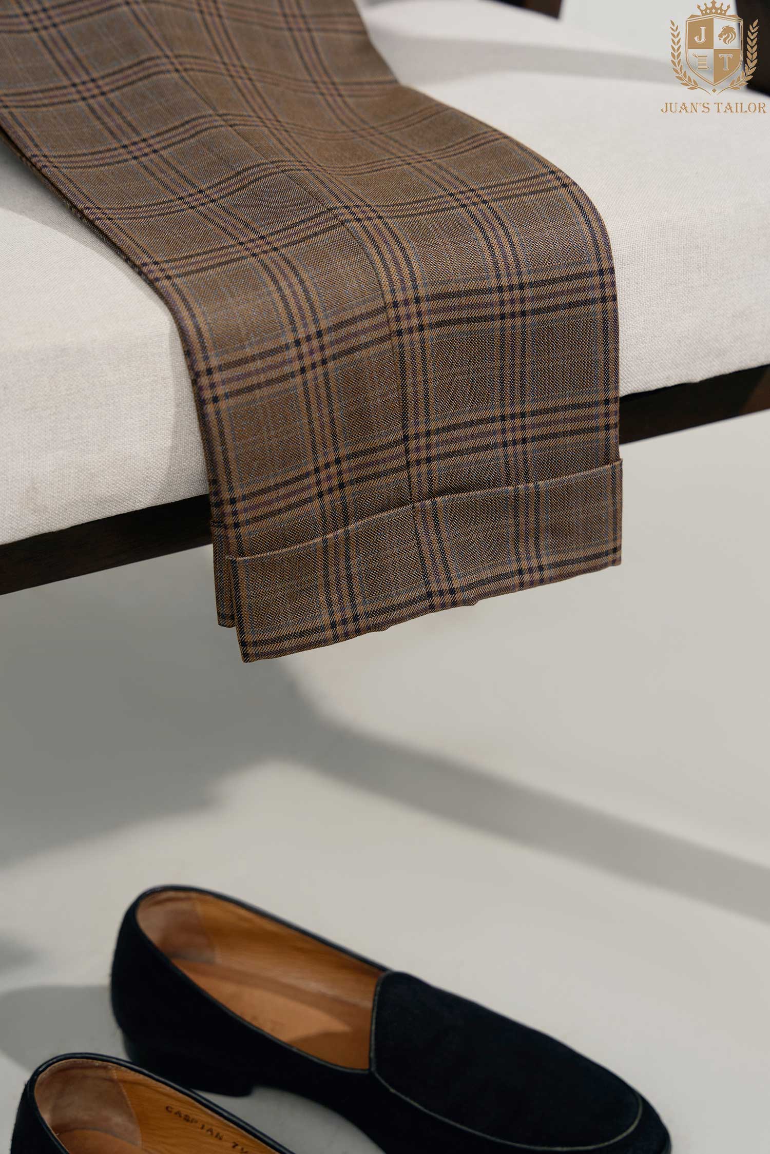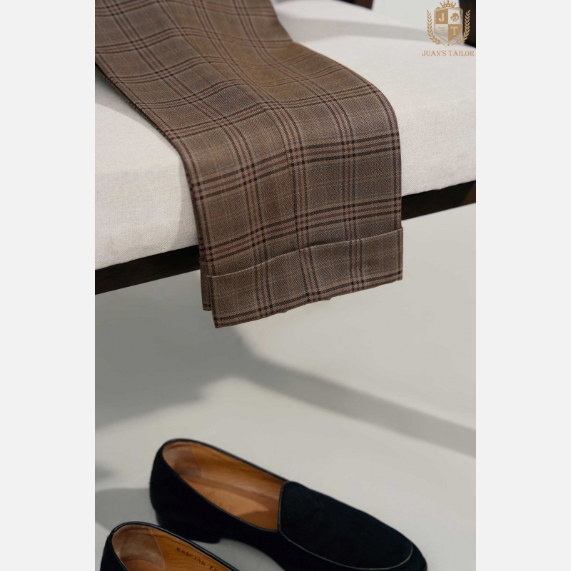 Quần âu Tartan Check của Juan’s Tailor gợi nhớ tinh thần Scotland cổ điển, mang đến sự mạnh mẽ và cá tính riêng biệt. Sắc nâu trầm ấm cùng những ô caro đan xen hài hòa tạo nên một tổng thể vừa lịch lãm, vừa gần gũi – phù hợp cho quý ông muốn khẳng định phong cách khác biệt mà vẫn giữ được nét sang trọng.