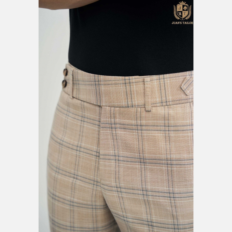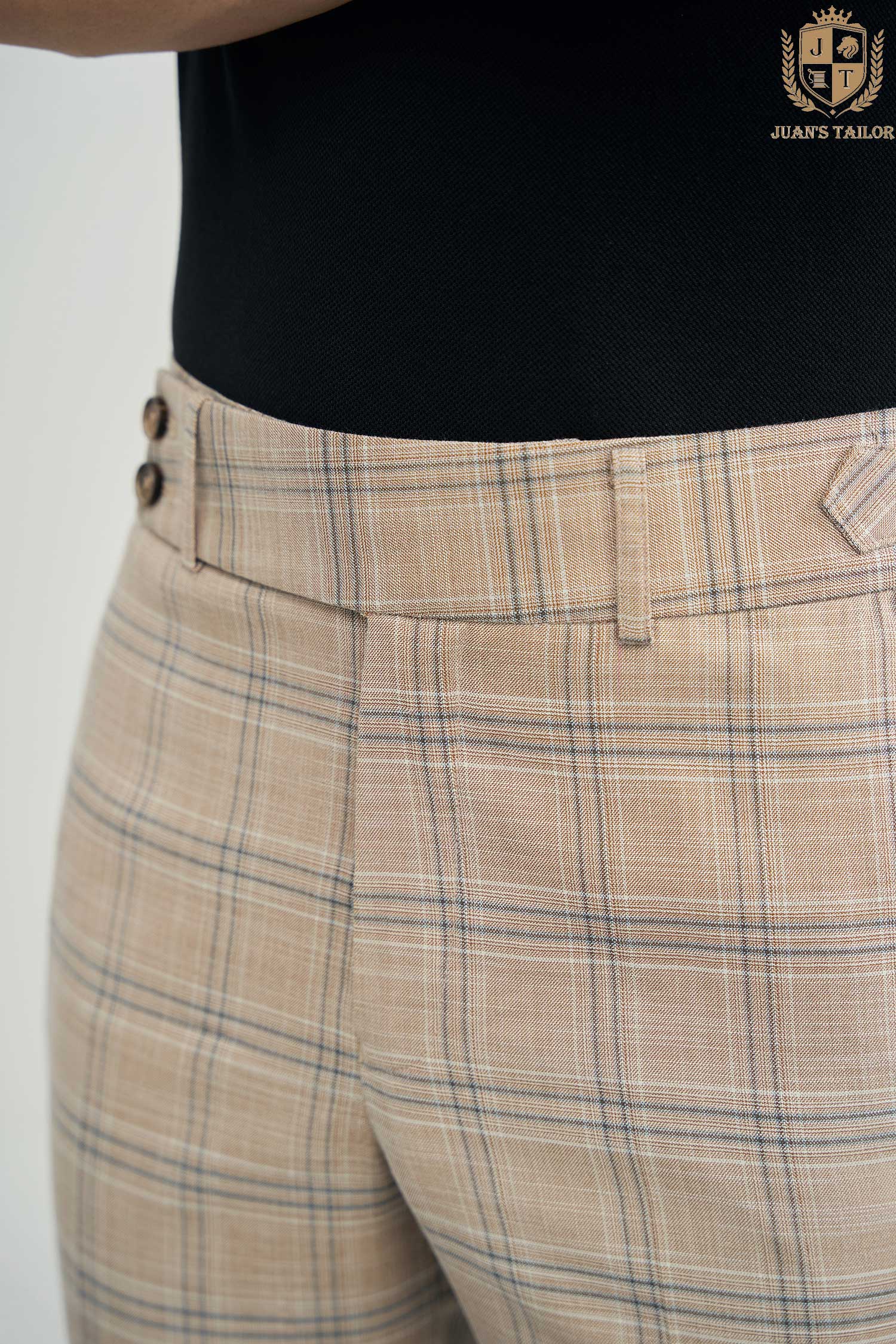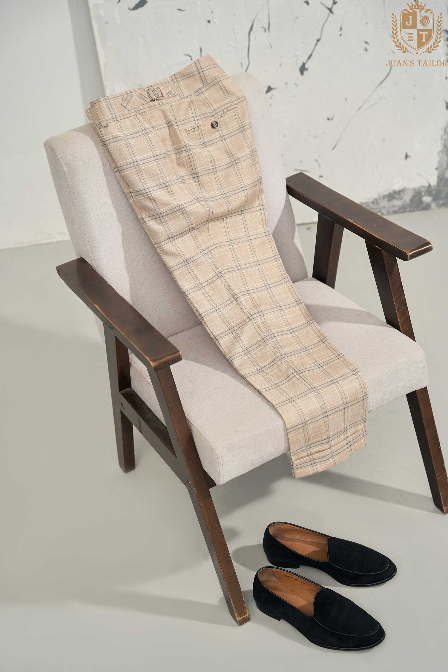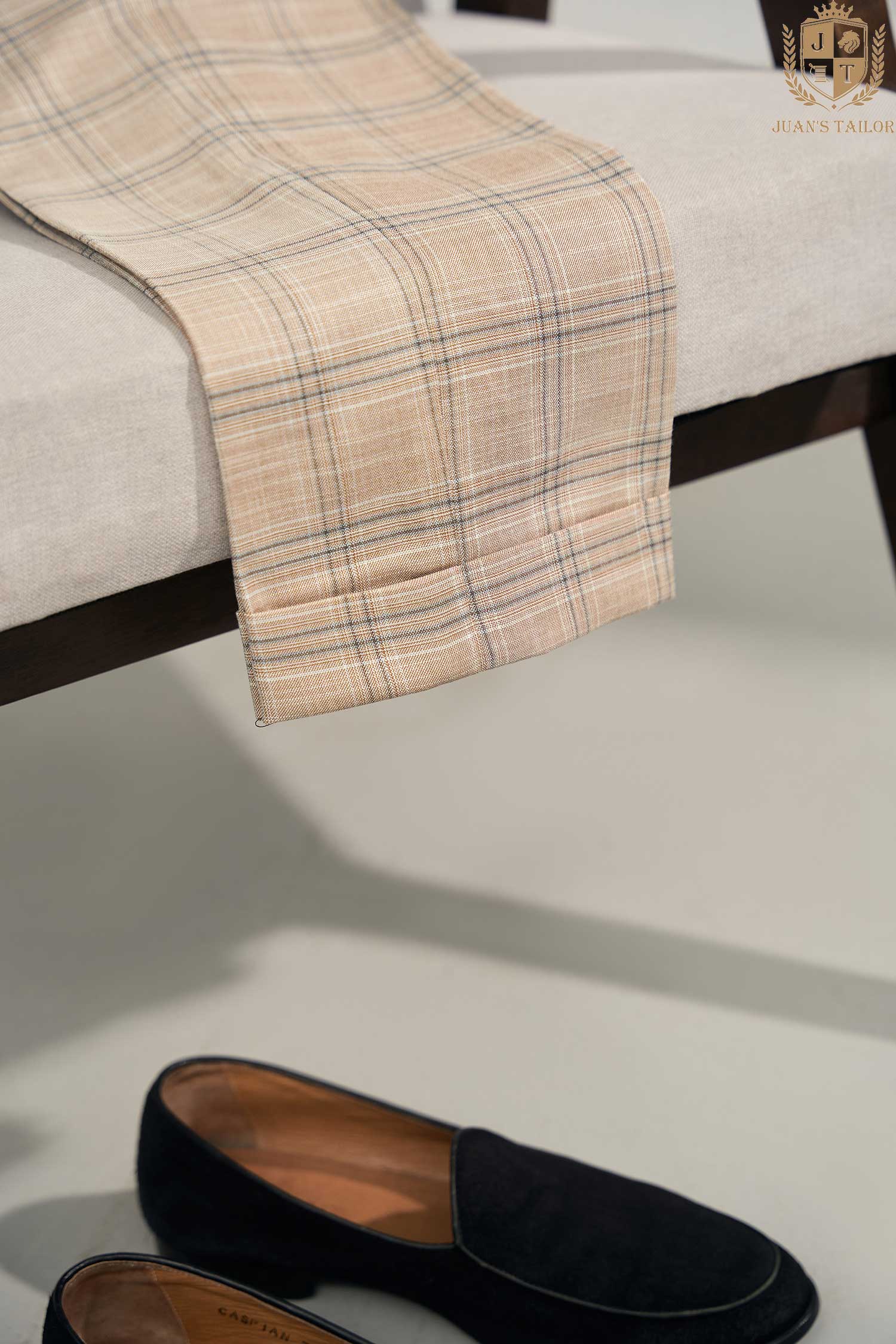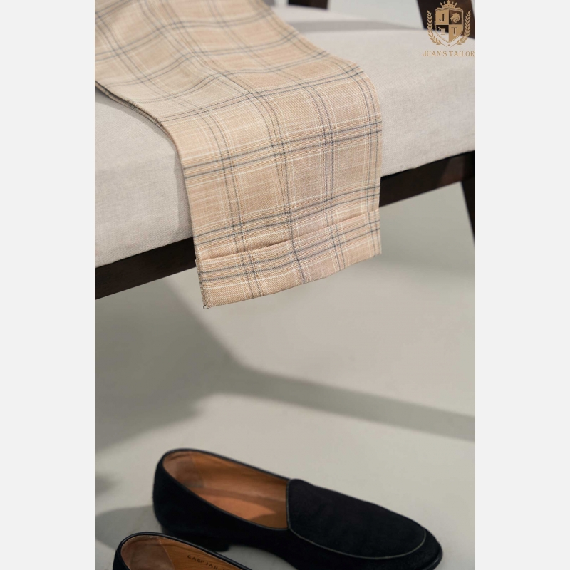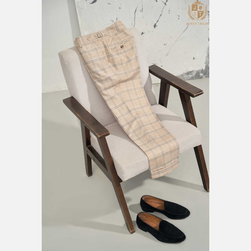 Quần âu Windowpane của Juan’s Tailor mang hơi thở hiện đại và tươi mới nhờ họa tiết ô lớn đặc trưng. Nền vải màu beige sáng kết hợp cùng những đường kẻ thanh mảnh tạo hiệu ứng thị giác phóng khoáng, giúp quý ông nổi bật mà vẫn giữ được sự tinh tế. Đây là lựa chọn lý tưởng cho những ai muốn làm mới phong cách công sở hay tạo dấu ấn trong những buổi tiệc gặp gỡ.