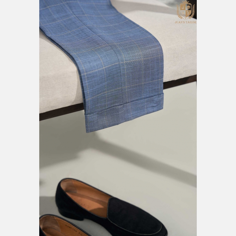 Quần âu Windowpane từ Juan’s Tailor mang đến nét trẻ trung phóng khoáng nhờ những đường kẻ ô lớn rõ ràng – gợi cảm hứng từ phong cách Ý hiện đại. Sắc xanh tươi sáng kết hợp họa tiết ô cửa sổ tạo nên điểm nhấn khác biệt, giúp quý ông nổi bật trong những dịp giao lưu, sự kiện hay buổi hẹn hò cuối tuần.