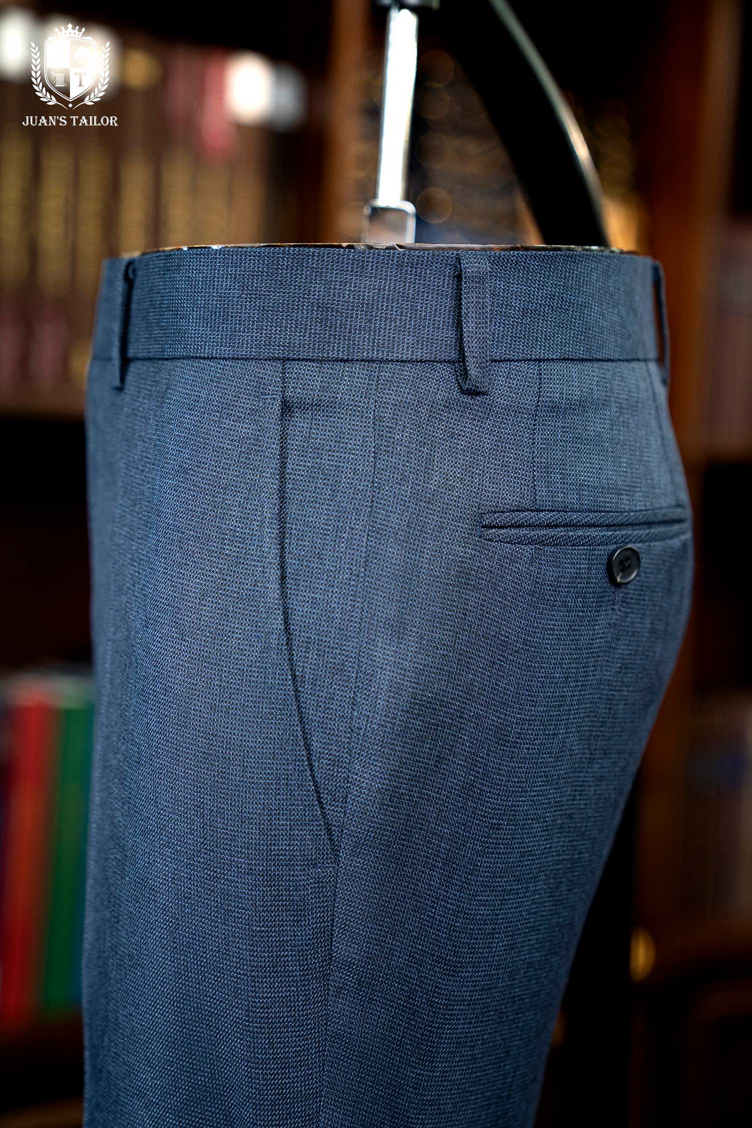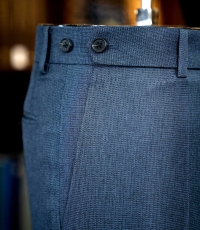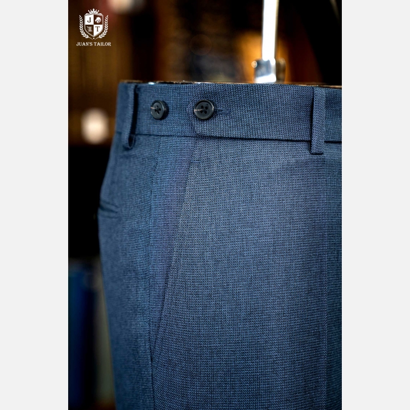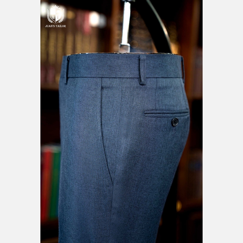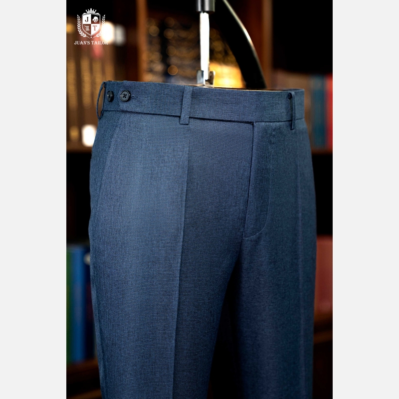 - Nằm trong bộ sưu tập dành cho những quý ông theo đuổi sự hoàn mỹ, mẫu quần âu này là minh chứng cho nghệ thuật chế tác thủ công đỉnh cao. Trên nền vải cao cấp mang sắc xanh lam ghi (steel blue) thời thượng, họa tiết dệt birdseye (mắt chim) tinh xảo tạo nên chiều sâu và một kết cấu độc đáo, thu hút ánh nhìn một cách đầy tinh tế. Thiết kế gây ấn tượng với phom dáng flat-front (không ly) hiện đại, được cắt may chuẩn xác để tôn lên vóc dáng người mặc.