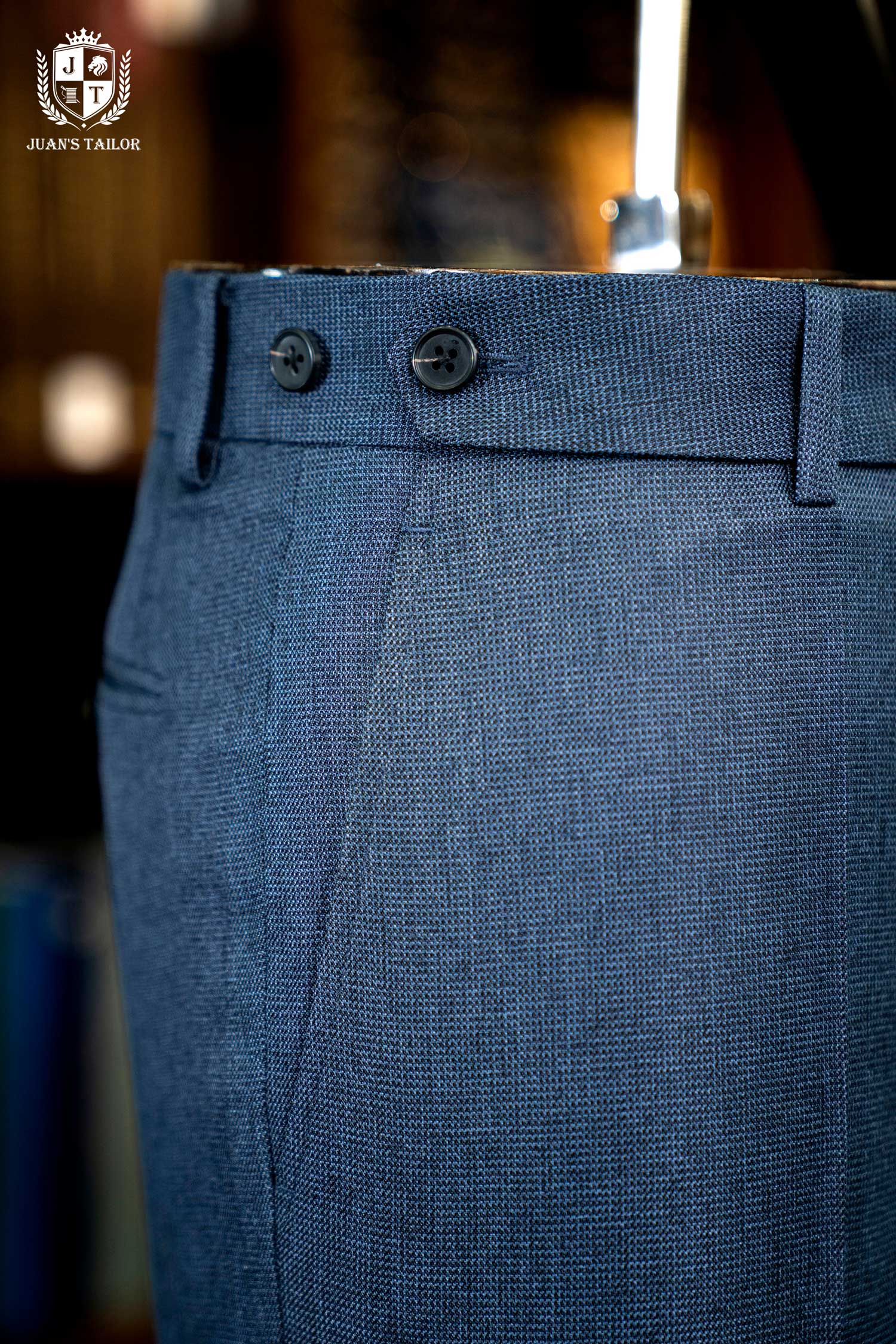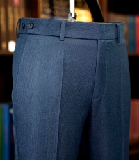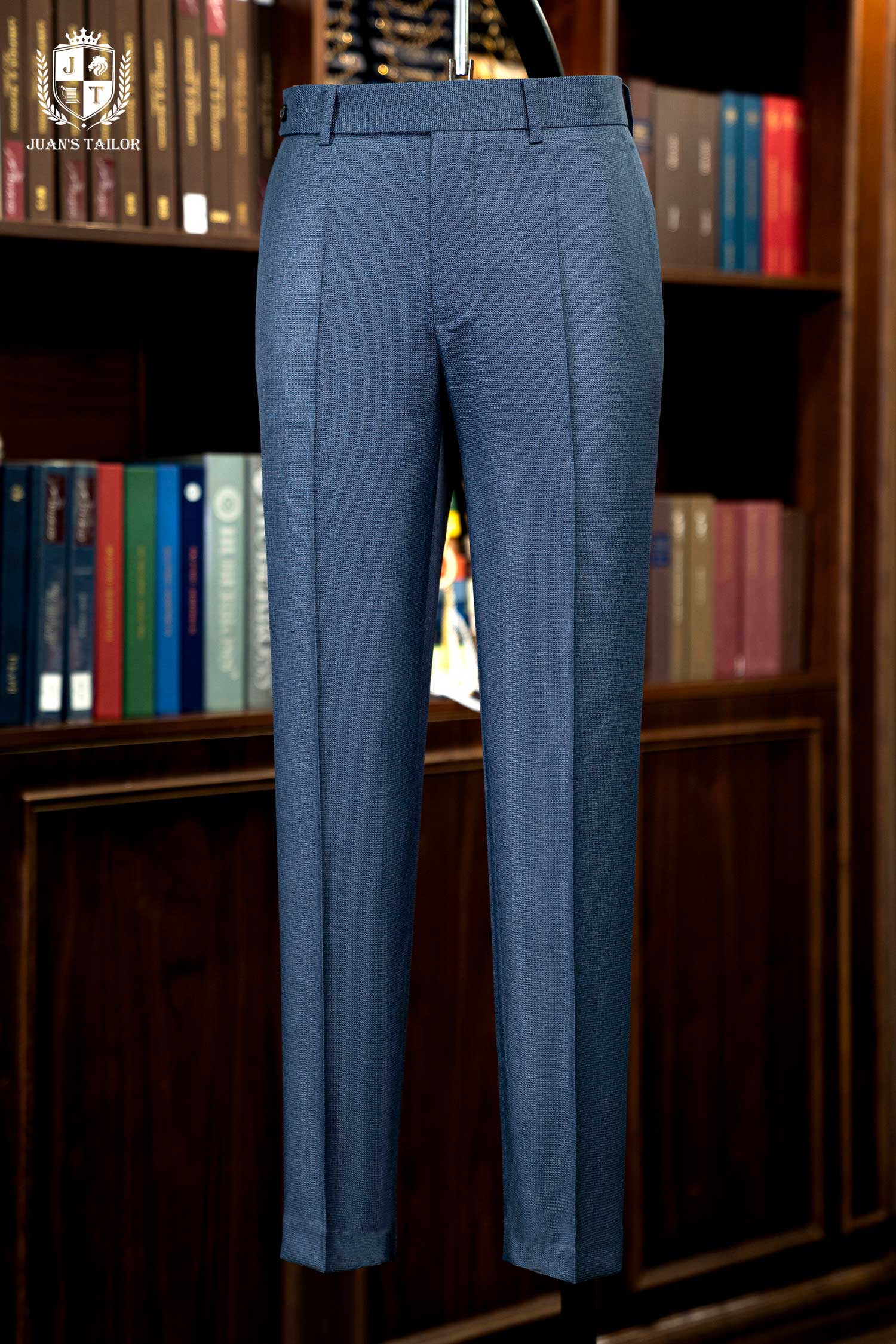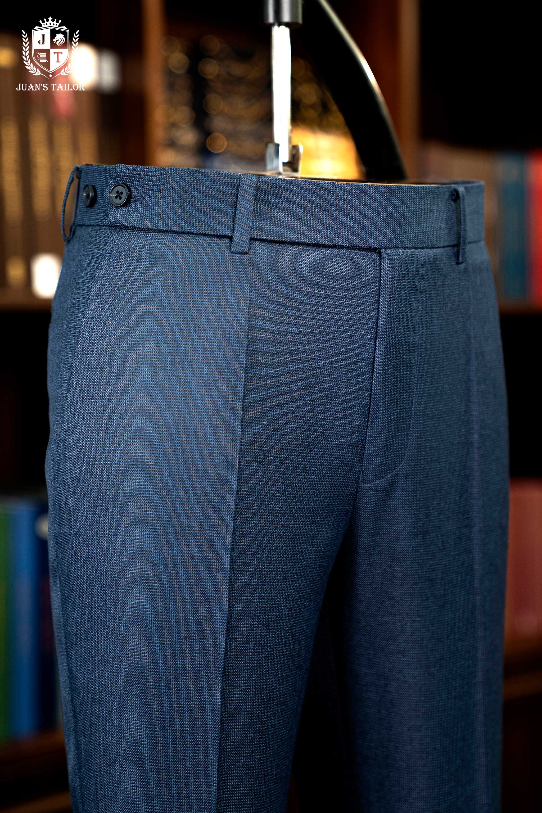 - Nằm trong bộ sưu tập dành cho những quý ông theo đuổi sự hoàn mỹ, mẫu quần âu này là minh chứng cho nghệ thuật chế tác thủ công đỉnh cao. Trên nền vải cao cấp mang sắc xanh lam ghi (steel blue) thời thượng, họa tiết dệt birdseye (mắt chim) tinh xảo tạo nên chiều sâu và một kết cấu độc đáo, thu hút ánh nhìn một cách đầy tinh tế. Thiết kế gây ấn tượng với phom dáng flat-front (không ly) hiện đại, được cắt may chuẩn xác để tôn lên vóc dáng người mặc.