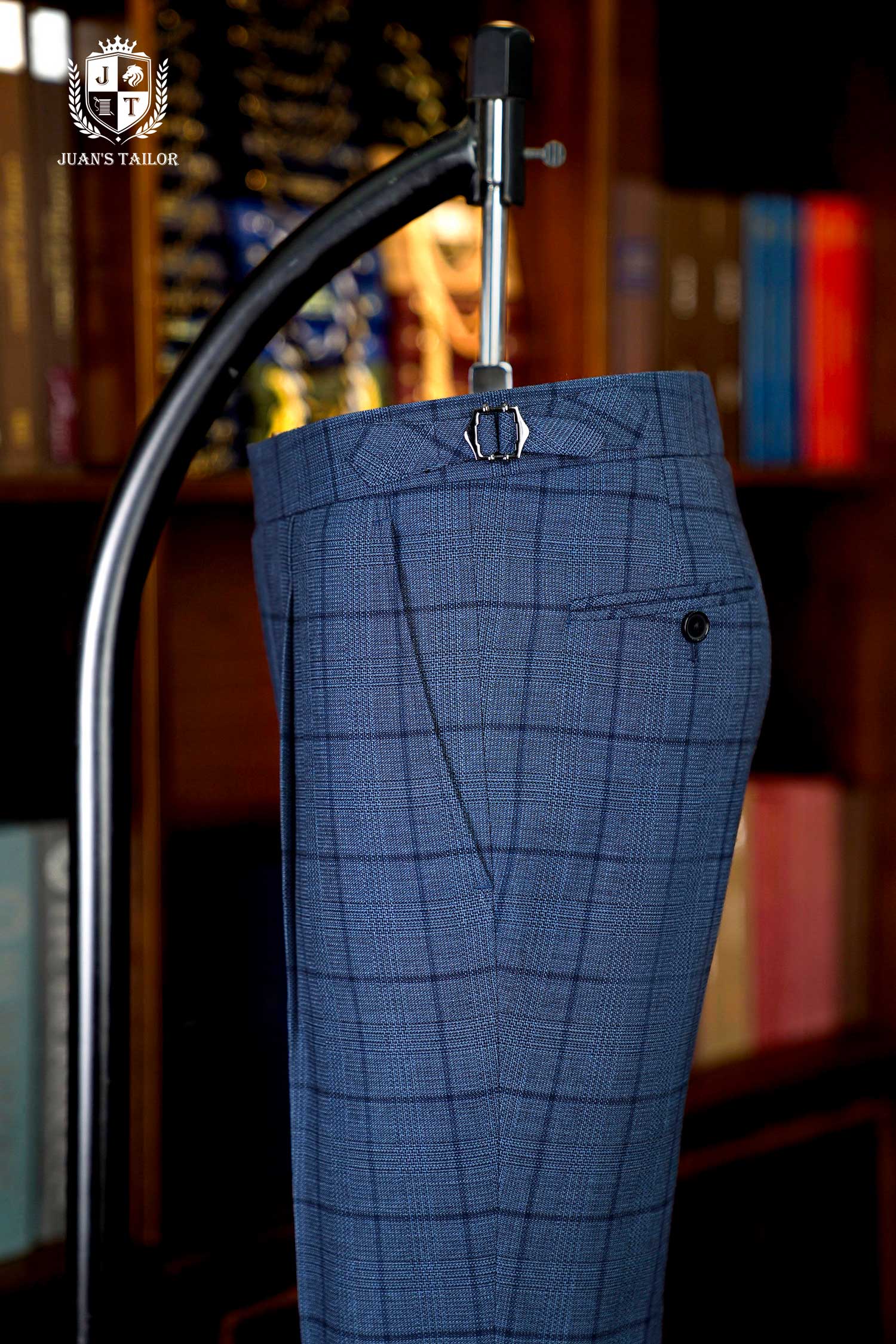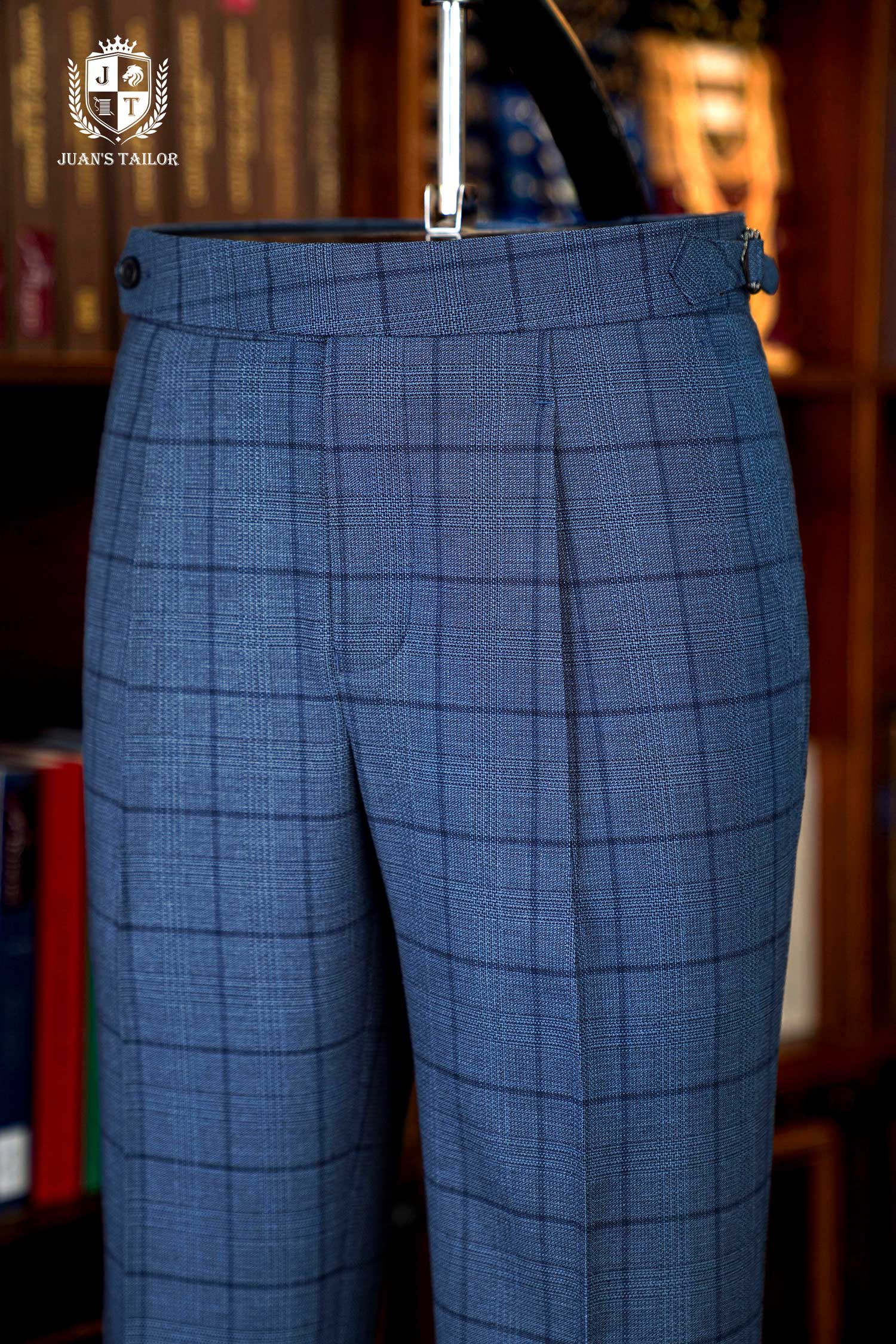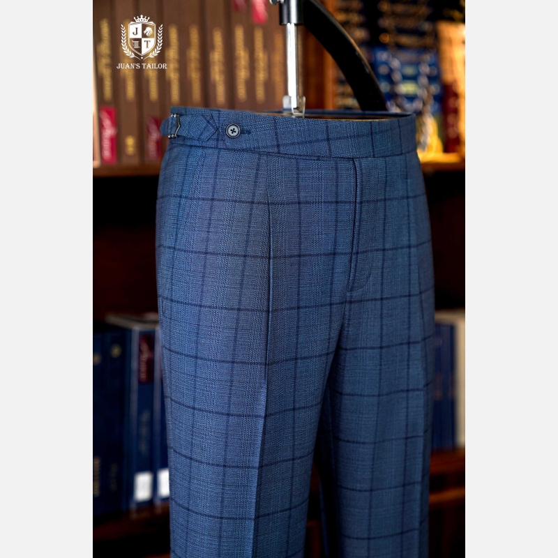 - Với những đường kẻ ô sắc sảo trên nền vải xanh navy, chiếc quần này chính là lời khẳng định phong cách không cần nói thành lời.