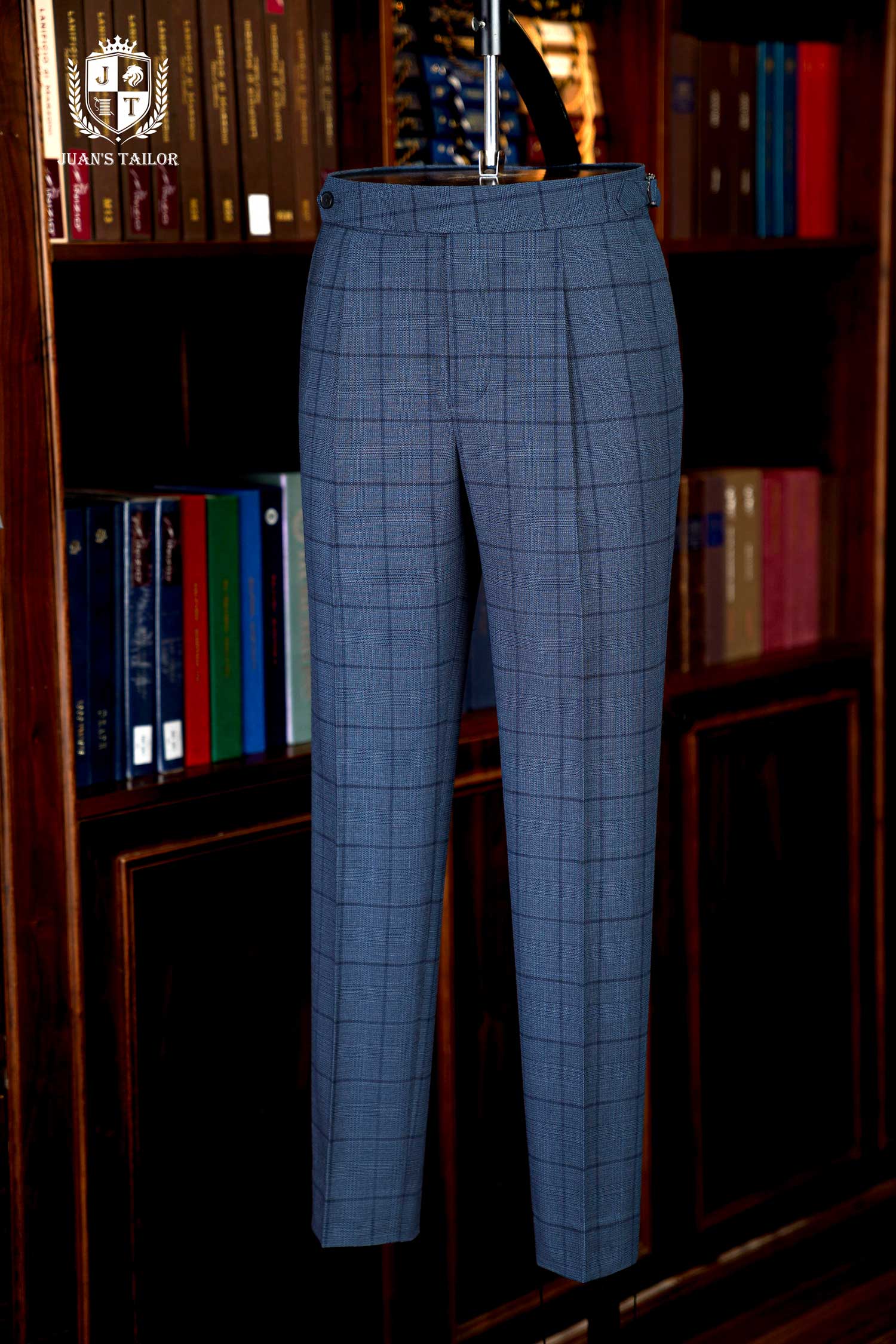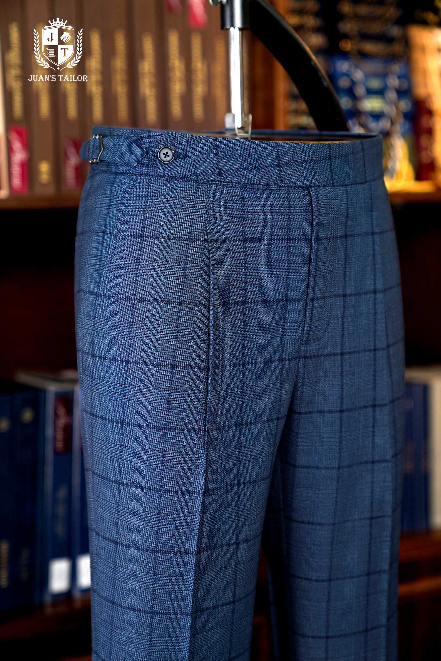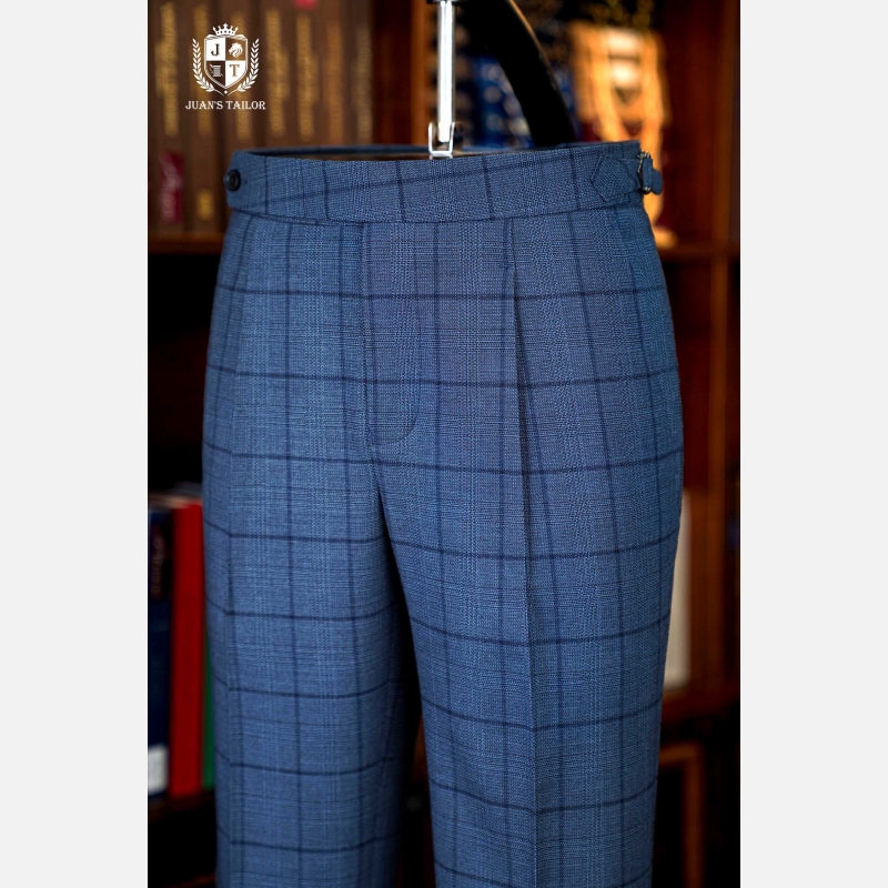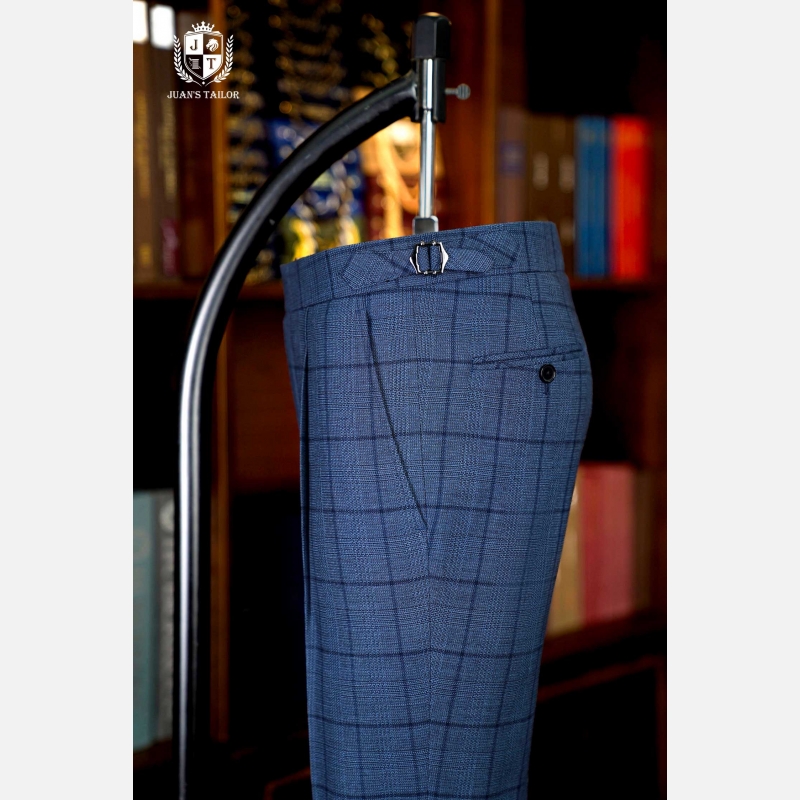 - Với những đường kẻ ô sắc sảo trên nền vải xanh navy, chiếc quần này chính là lời khẳng định phong cách không cần nói thành lời.