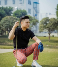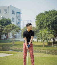 Vì mẫu quần golf này có gam màu đỏ nổi bật lại thêm nhiều đường kẻ, nên trang phục kết hợp càng đơn giản càng tốt.