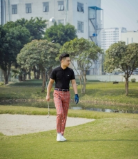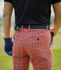 Quần golf kẻ đỏ sặc sỡ, phong cách
