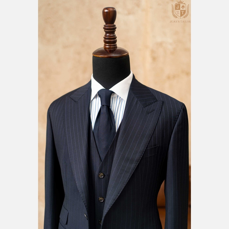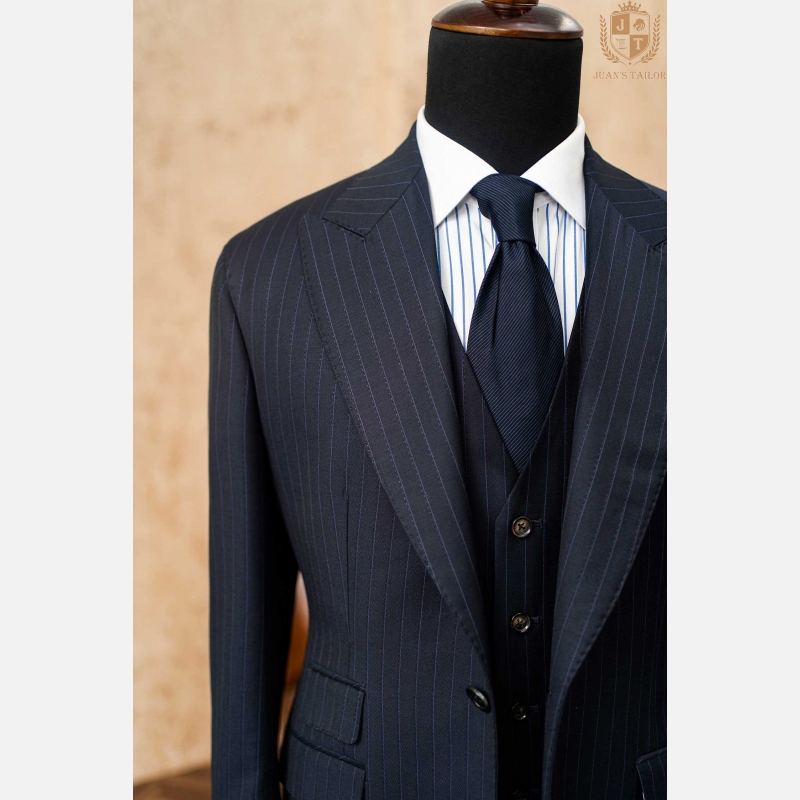 Suit 3 mảnh tím than với họa tiết herringbone đặc trưng – sự lựa chọn hoàn hảo cho quý ông yêu thích chiều sâu tinh tế trong từng chi tiết. Màu tím than sang trọng vừa cổ điển vừa hiện đại, phù hợp từ những cuộc gặp gỡ trang trọng cho tới những buổi tối café, networking. Thiết kế này mang đến sự tự tin, đẳng cấp nhưng vẫn giữ nét trầm tĩnh, chín chắn.