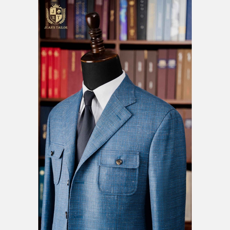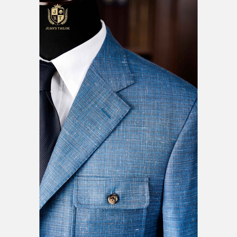 - Chất liệu wool – silk – linen từ hãng vải Ý Medici đem đến một diện mạo đầy chiều sâu: wool giữ phom, linen tạo độ thoáng nhẹ, và silk mang lại ánh sắc tinh tế, sang trọng. Medici vốn nổi tiếng với khả năng xử lý bề mặt sợi vải giàu hiệu ứng thị giác, khiến từng thước vải trở nên sống động và có hồn.
