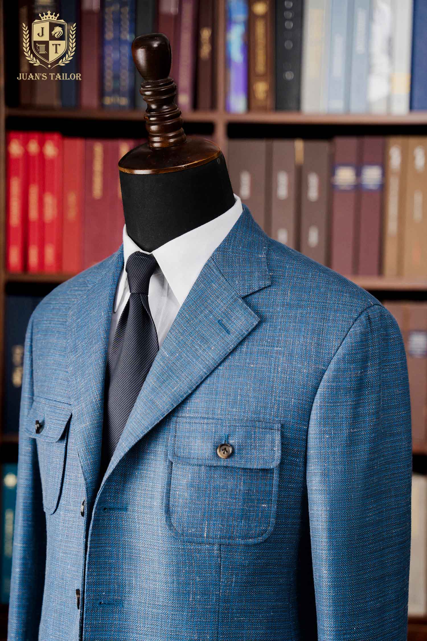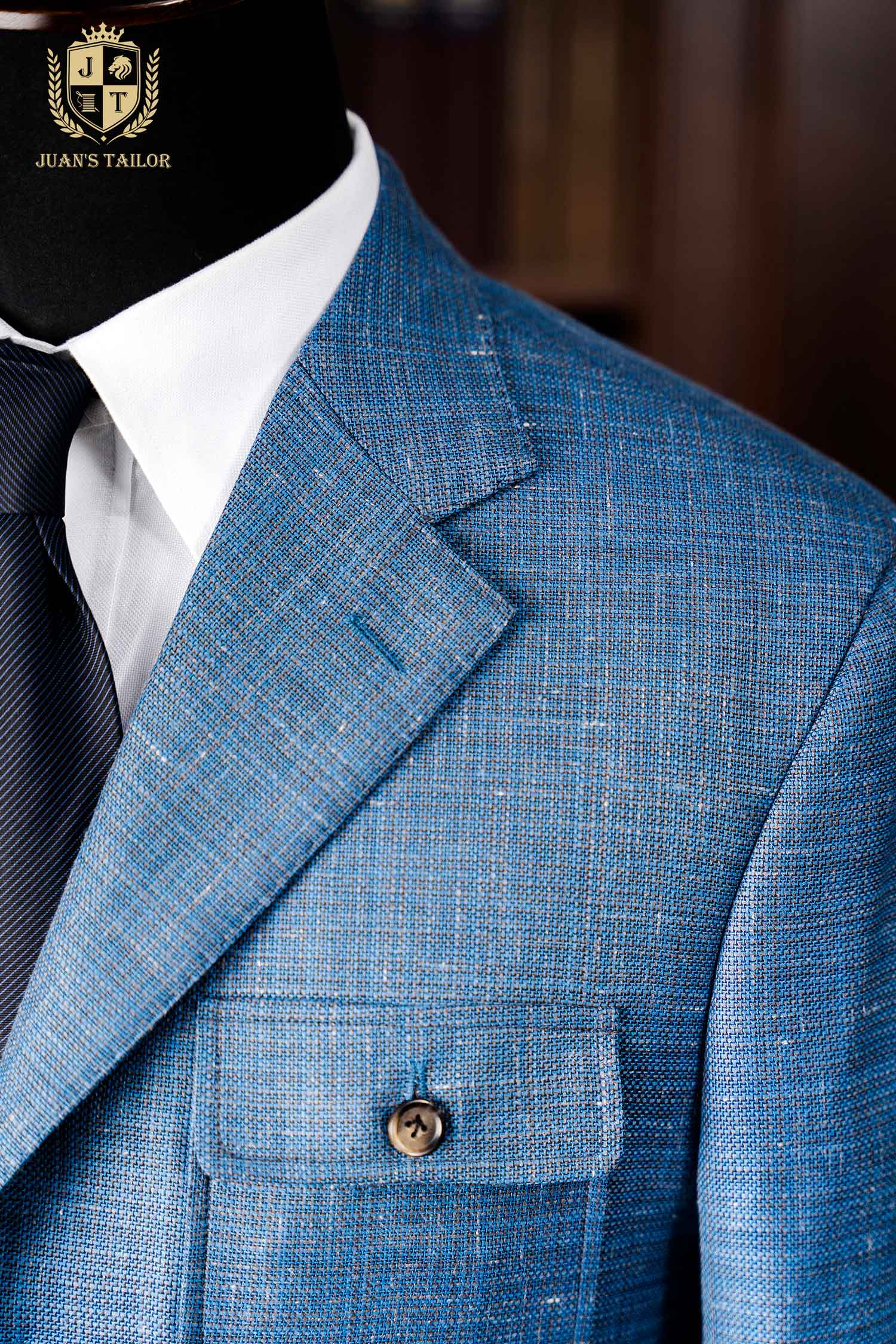 - Gam xanh melange, khi gặp ánh sáng, phản chiếu những chuyển sắc tinh tế, đủ nổi bật mà vẫn chừng mực – lý tưởng cho quý ông hiện đại, vừa cần sự chuẩn mực trong công việc, vừa muốn một chút phóng khoáng cho đời sống thường nhật.