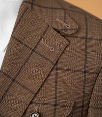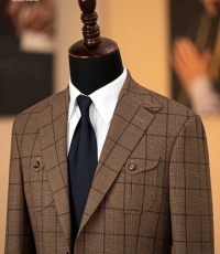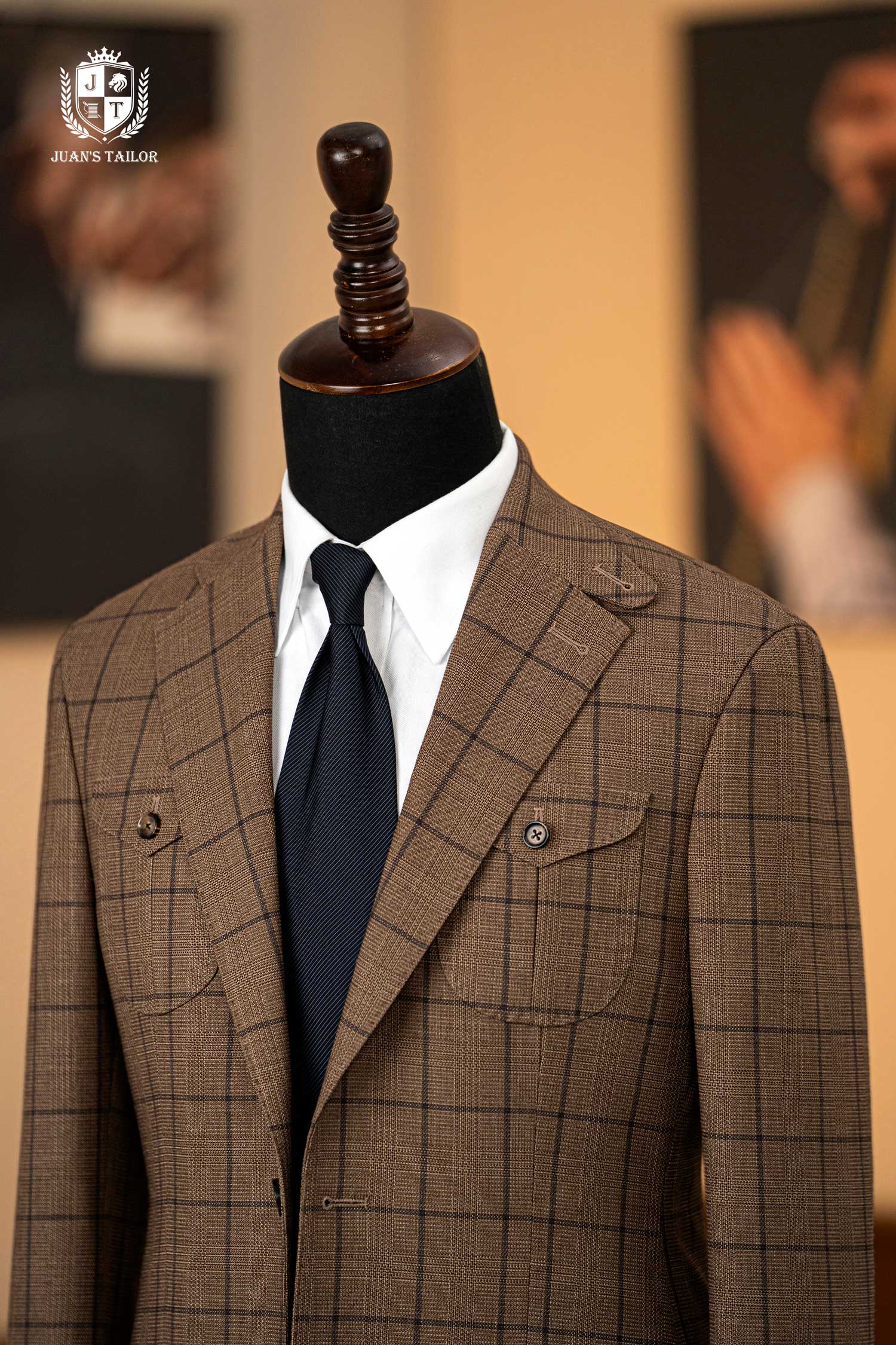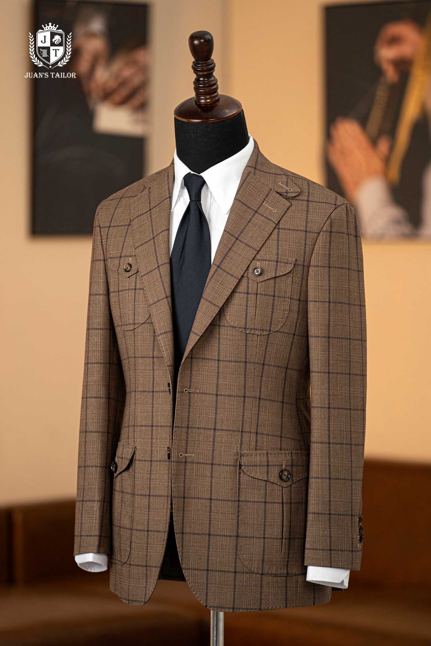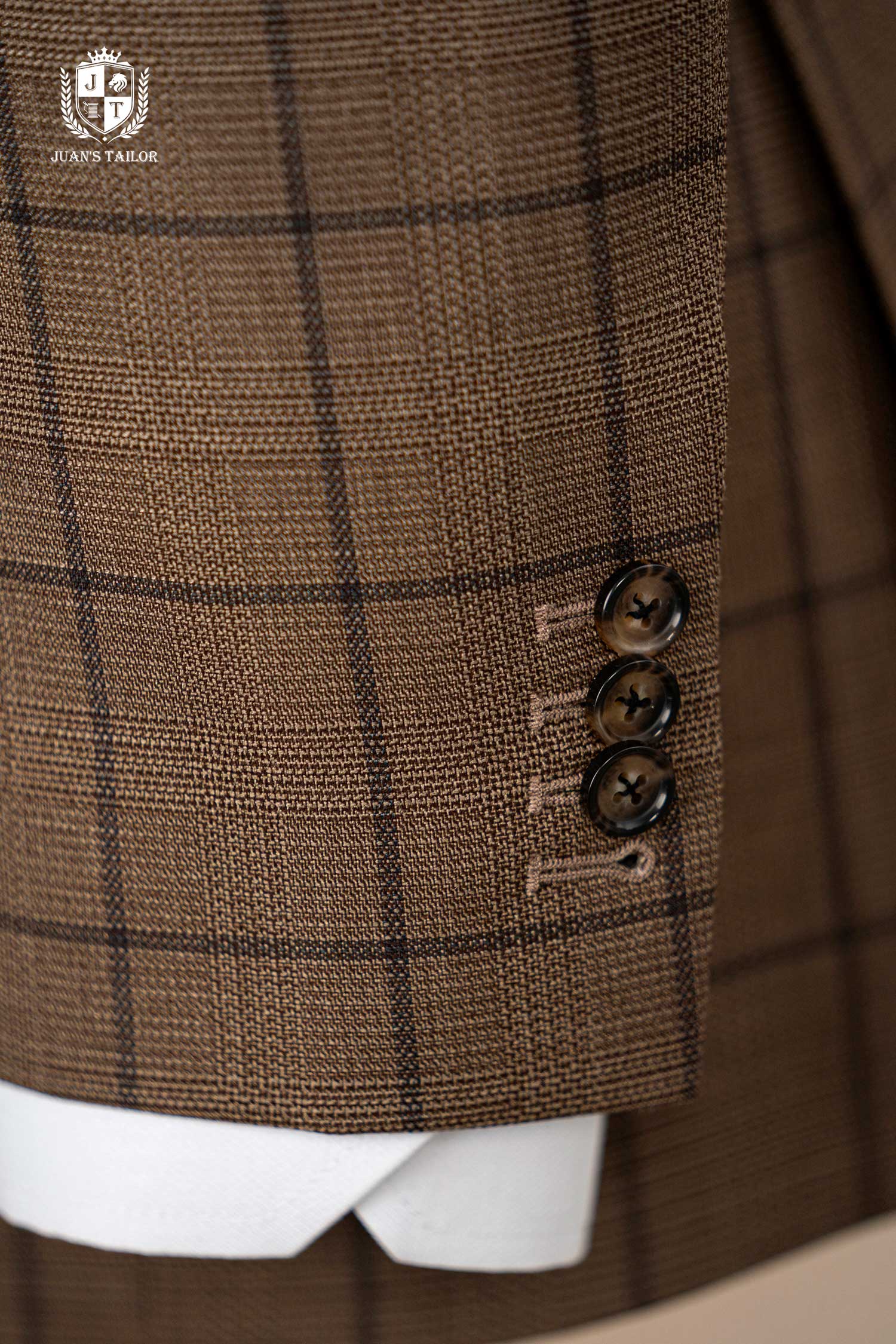 Chiếc blazer nâu caro này dành cho những quý ông yêu sự phóng khoáng nhưng vẫn muốn giữ vẻ lịch thiệp. Nền nâu trầm kết hợp caro lớn tạo cảm giác trưởng thành, trong khi bề mặt vải dệt nổi mang lại chiều sâu và sự sang trọng khi nhìn gần.