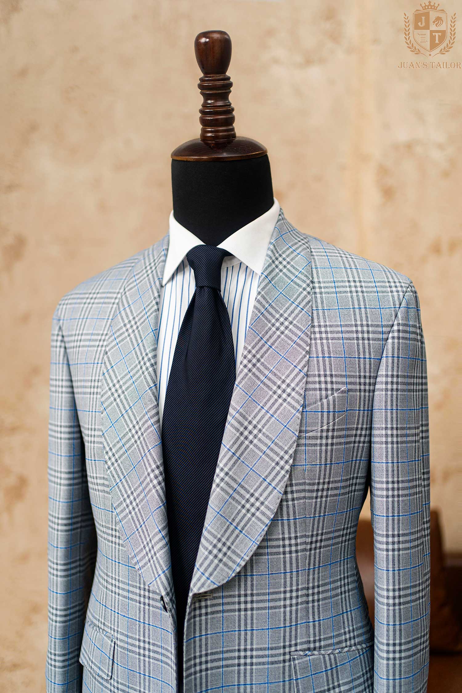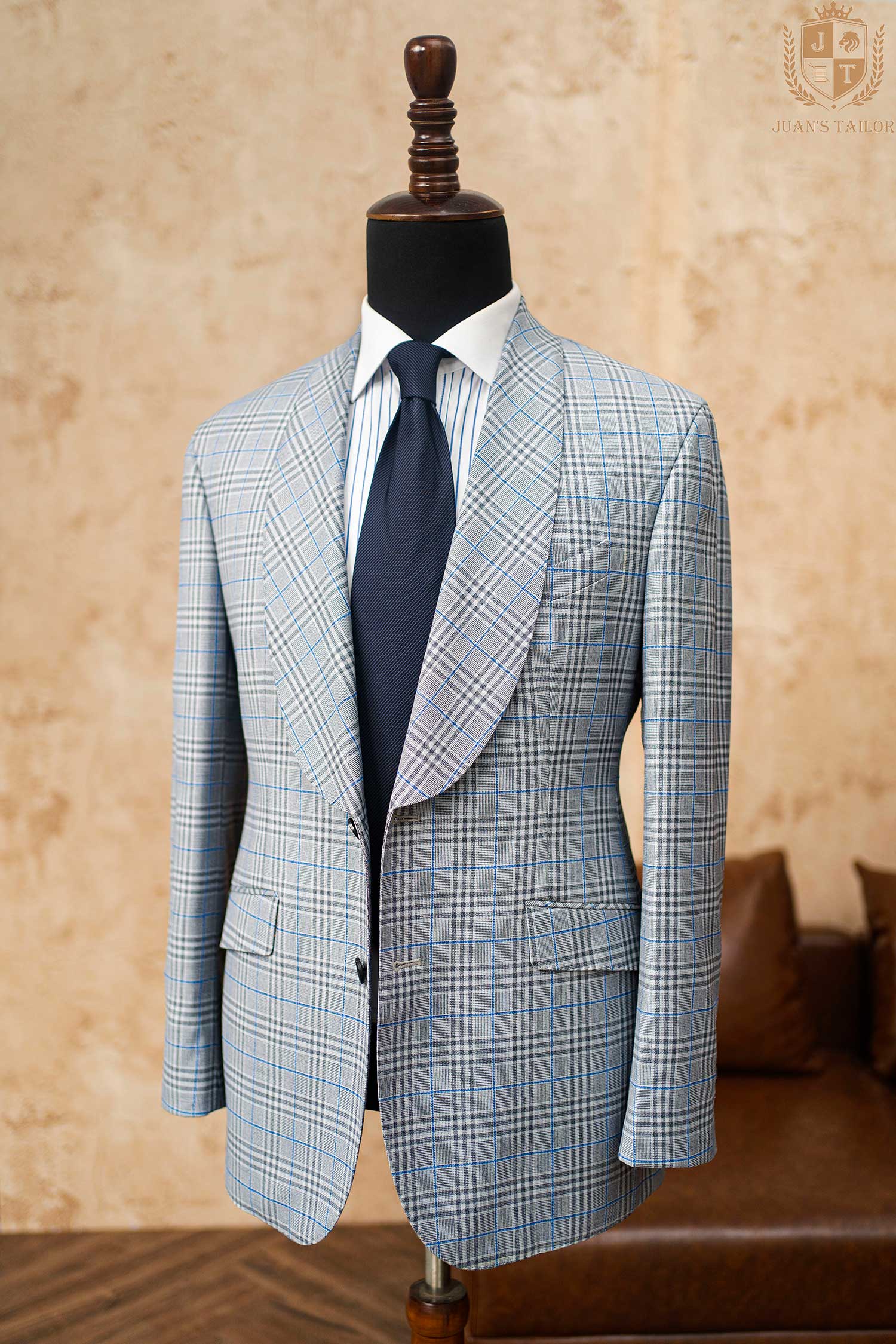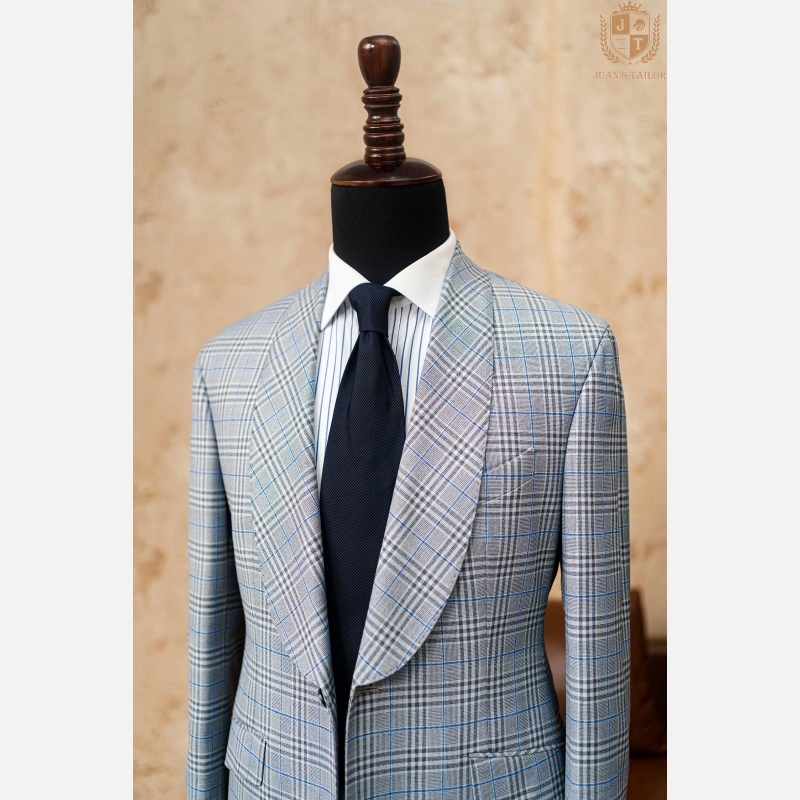 ✔ Họa tiết windowpane xanh xám: nổi bật mà không quá phô trương, dễ dàng phối cùng quần âu trơn màu hoặc jeans tối.