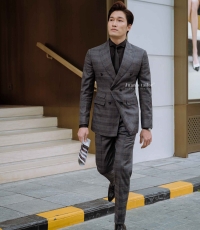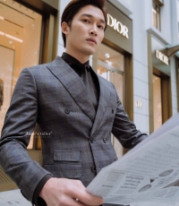 DOUBLE - BREASTED SUIT SUIT KẺ 2 HÀNG KHUY GHI XÁM