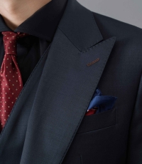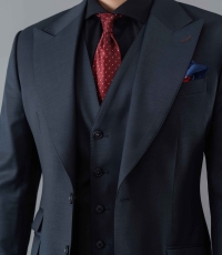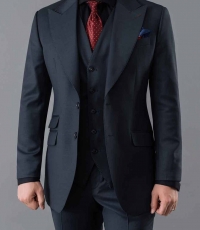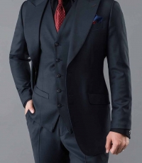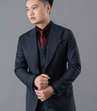 Bộ suit ghi đậm là một thiết kế đẳng cấp và quyền lực. Bộ suit 3 mảnh với áo khoác được cắt may cho ôm nhẹ ở phần eo. Ve áo nhọn mạnh mẽ. Phần túi ngực và túi hai bên được may chắc chắn. Áo gile ở trong ôm gọn thân người.