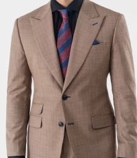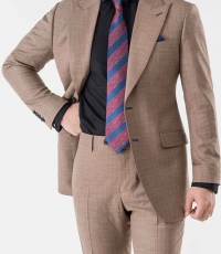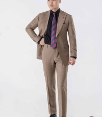 Bộ suit màu nâu vàng kẻ sọc mang cảm giác chín chắn, cổ điển nhưng cũng không kém phần hiện đại. Nhờ sự khéo léo của những thợ may hàng đầu mà sản phẩm được hoàn thiện rất tốt. Đây sẽ là một chút sắc màu thêm vào tủ đồ phong cách của các quý ông.