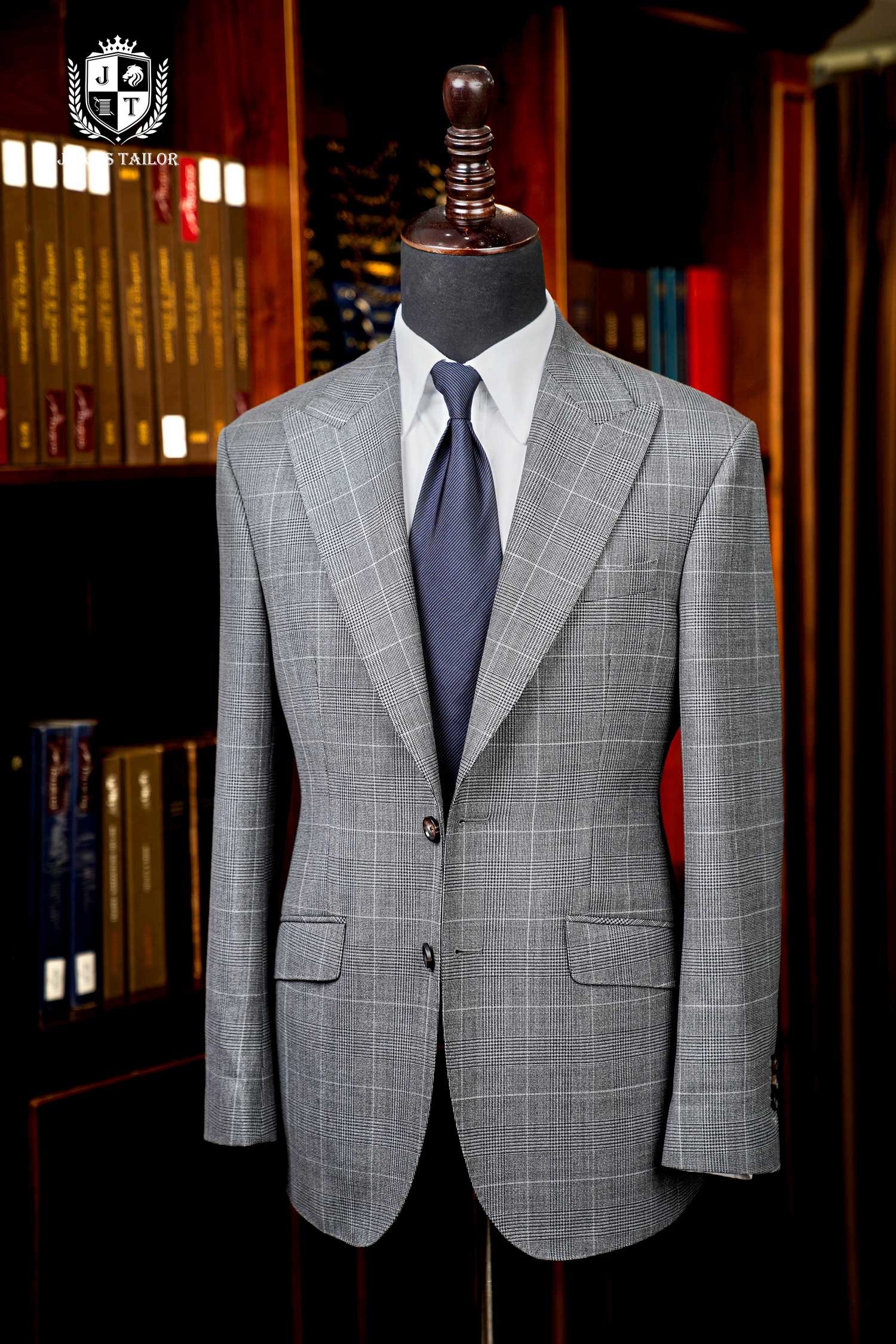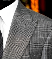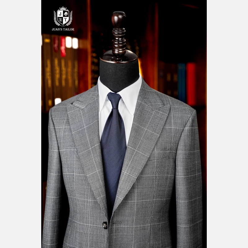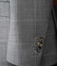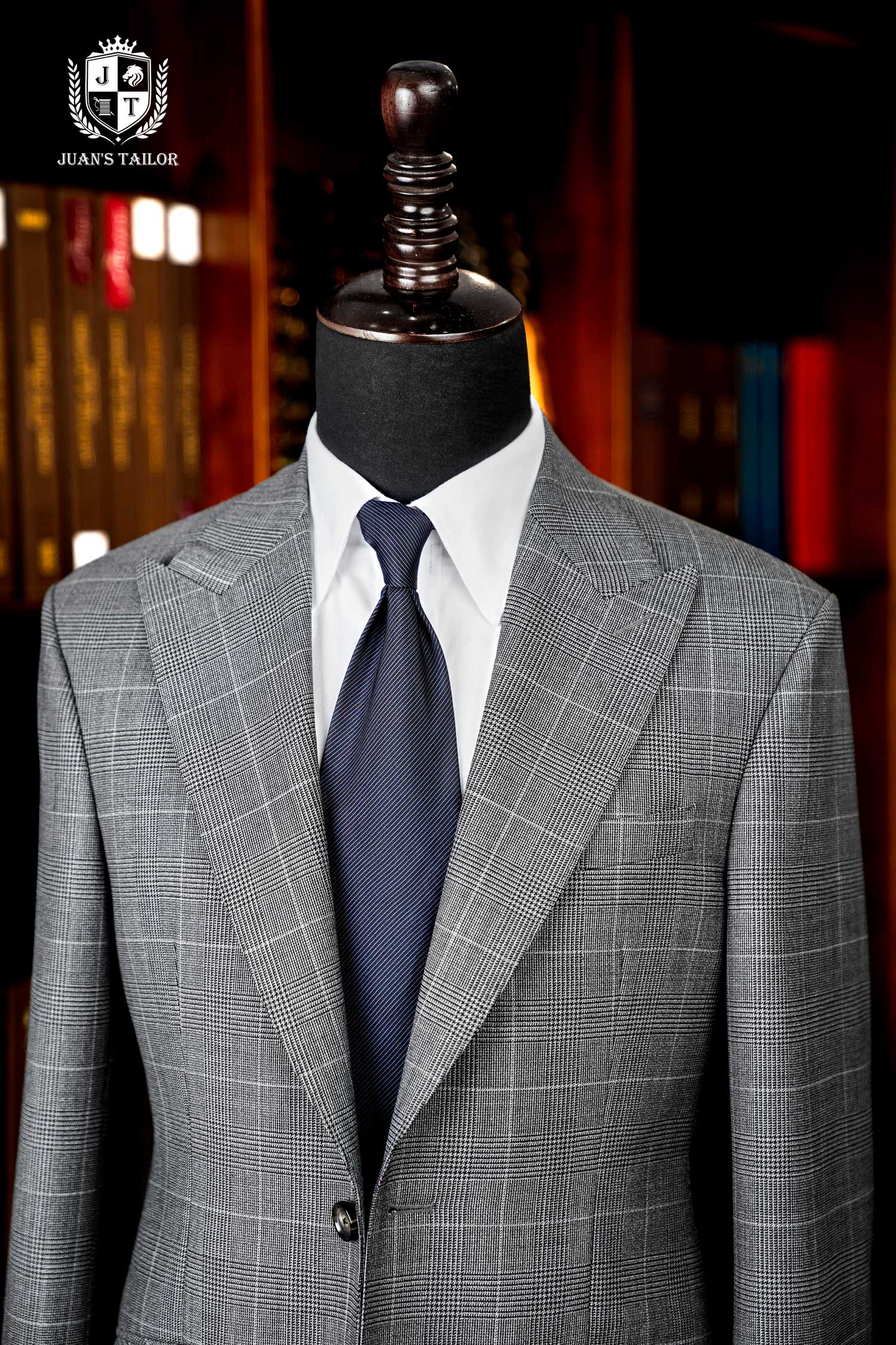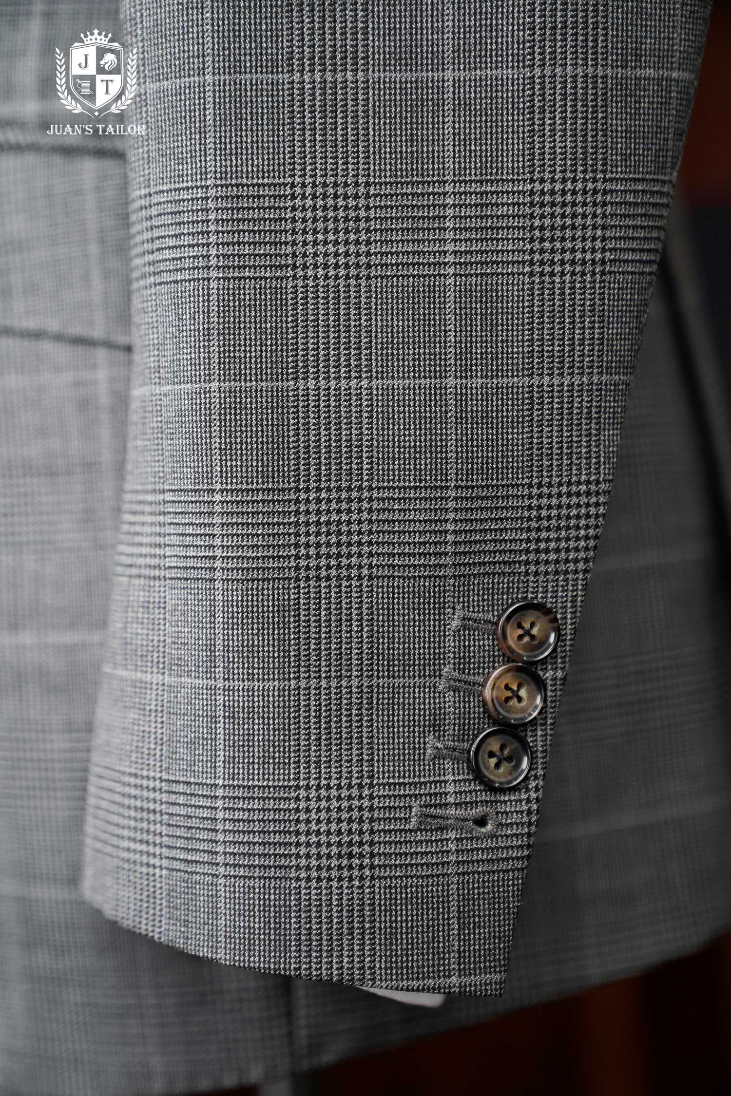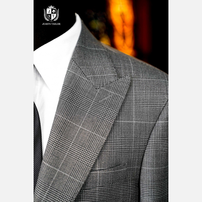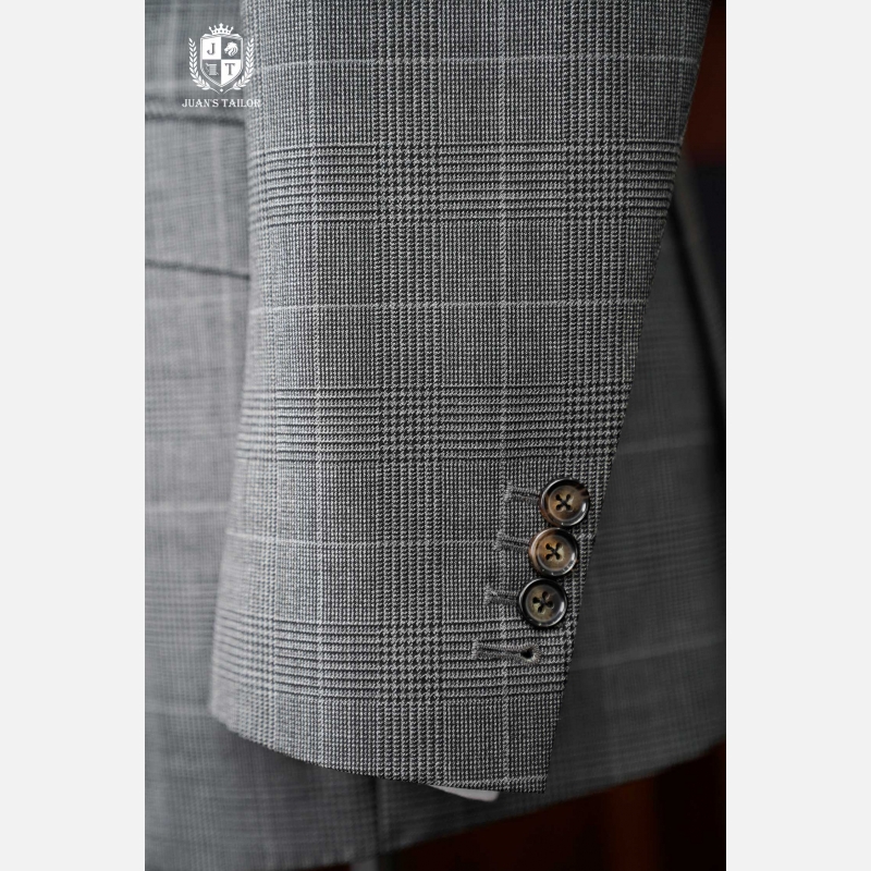 - Bộ suit mang tinh thần cổ điển Anh quốc với họa tiết Glen Check sắc nét – đặc trưng bởi những ô vuông lớn nhỏ đan xen và những đường kẻ đen – ghi mảnh chạy song song. Nhìn gần thấy rõ từng lớp họa tiết, nhìn xa lại hòa thành một bề mặt xám bạc sang trọng và rất “tinh tế”.